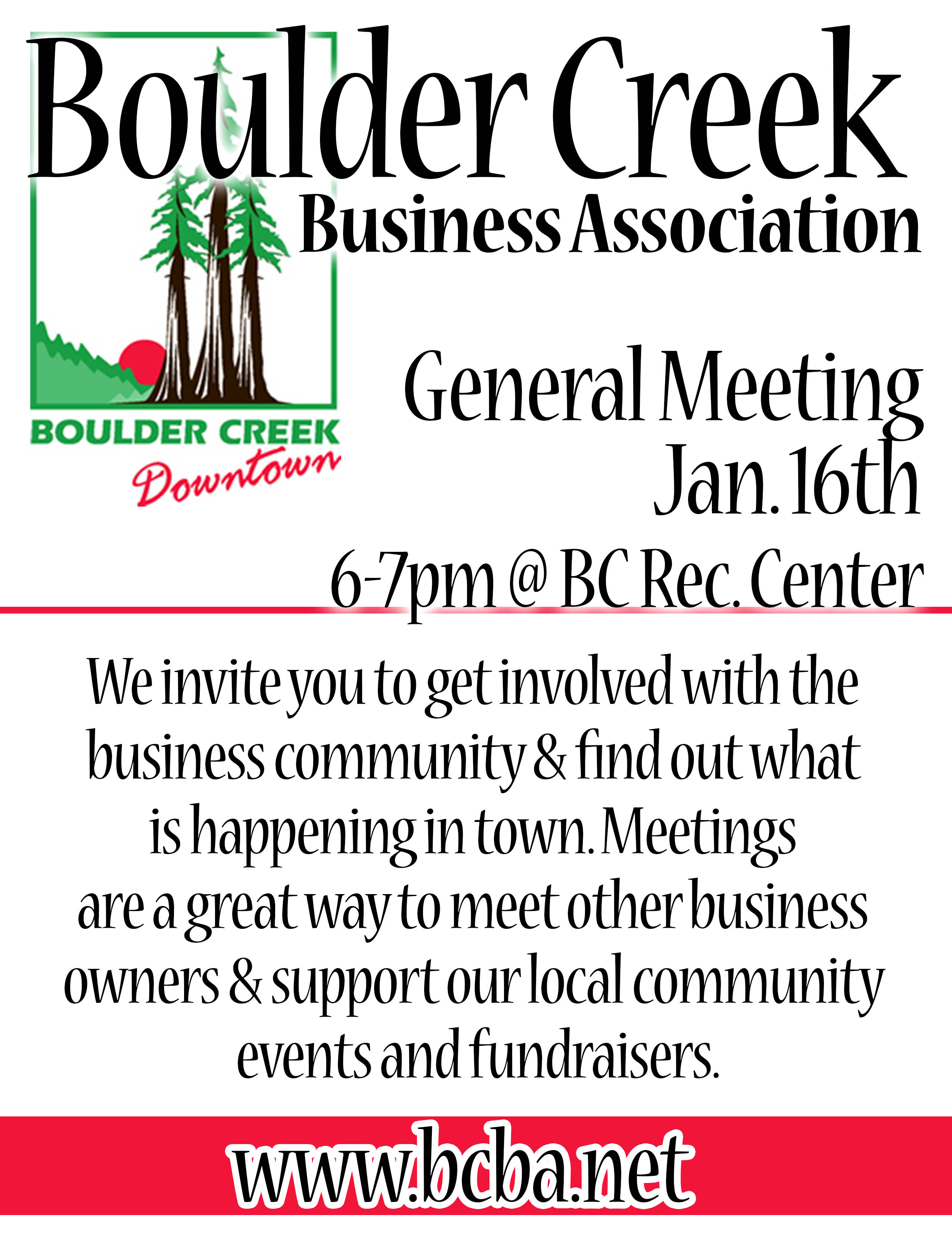 Boulder Creek Business Association – Meeting January 12, 2013 By JD in Stores and Shops Tags: BCBA, Business Association Leave a comment Share this: Click to share on X (Opens in new window) X Click to email a link to a friend (Opens in new window) Email Click to share on Facebook (Opens in new window) Facebook Click to share on Pinterest (Opens in new window) Pinterest Click to share on Tumblr (Opens in new window) Tumblr Like Loading... Related