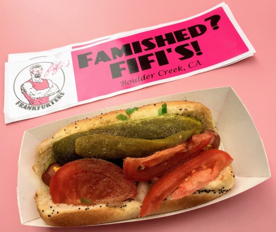 We now have a great new hot dog stand here in Boulder Creek. Right now Fifi’s Hot Dogs is only open on weekends, but they are planning to be open all week in a couple of months.