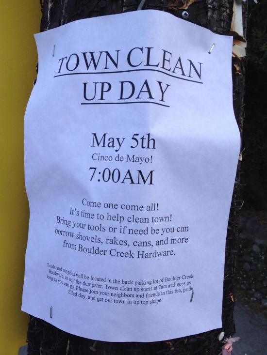 Come out and help clean up downtown. This Saturday from 8:00am – 12:00noon is the second town sweep of the year. Help clean up after Halloween and this long summer. Bring your shovels, brooms, rakes, power tools, and pride for Boulder Creek and help make our downtown shine.