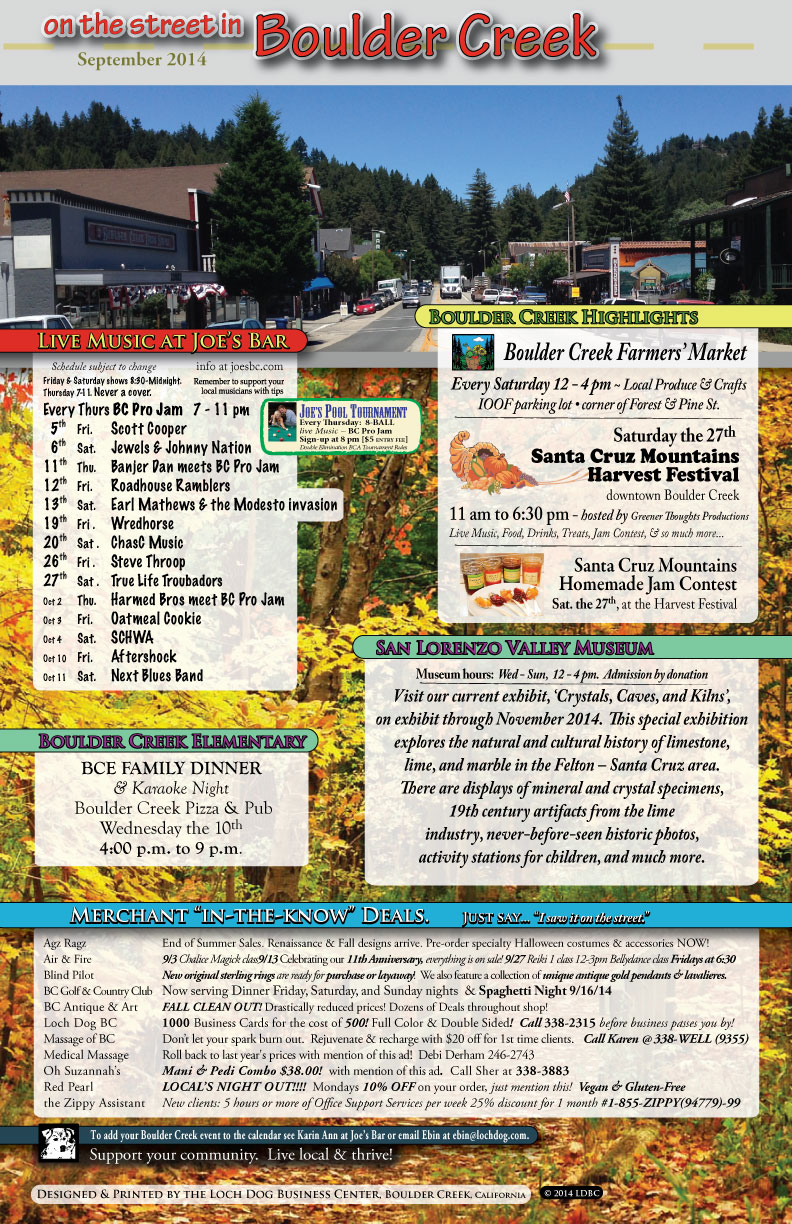 Boulder Creek Antiques & Art and Sgt. Penguin’s Lively Arts Designs are having their first Friday event to benefit HEARTS & HANDS, which improves the lives of our elderly. There will be door prizes, sales, featured artists, appetizers, and beverages at both locations. As well as music by Brookdale Bluegrass Band at Boulder Creek Antiques & Art.