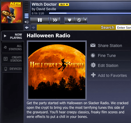 If you’re looking for a nice mix of free Halloween music for a party or to celebrate the day, Slacker Radio has a great Halloween Station at